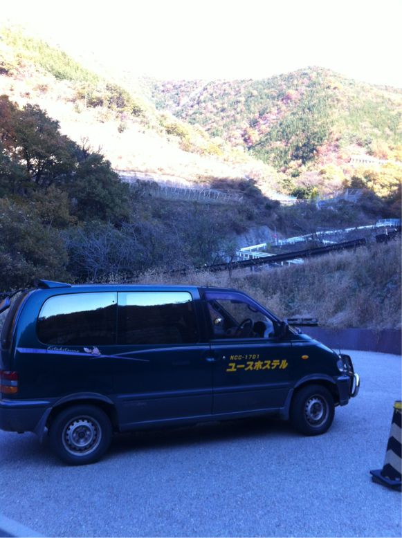 山側のワイヤーをしっかり留めてから1人がワイヤーを持って山の斜面を下り、